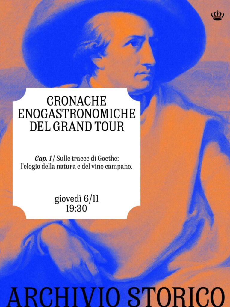 Cap. 1 / Sulle tracce di Goethe: l’elogio della natura. Siamo lieti di invitarvi all’evento inaugurale del nostro nuovo ciclo mensile, “Cronache Enogastronomiche del Grand Tour”. Un viaggio di sei capitoli che rievoca l’esperienza sensoriale dei grandi viaggiatori che fecero di Napoli il culmine della loro formazione. L’appuntamento del 6/11 è ancora più speciale: non solo daremo il via a questo ambizioso progetto, ma presenteremo in anteprima il nuovo menù e la nuova drink list dell’Archivio Storico, pensati per esaltare l’esperienza dei nostri ospiti! Un’occasione unica per unire storia, cultura e l’alta gastronomia delle nostre rinnovate proposte!
